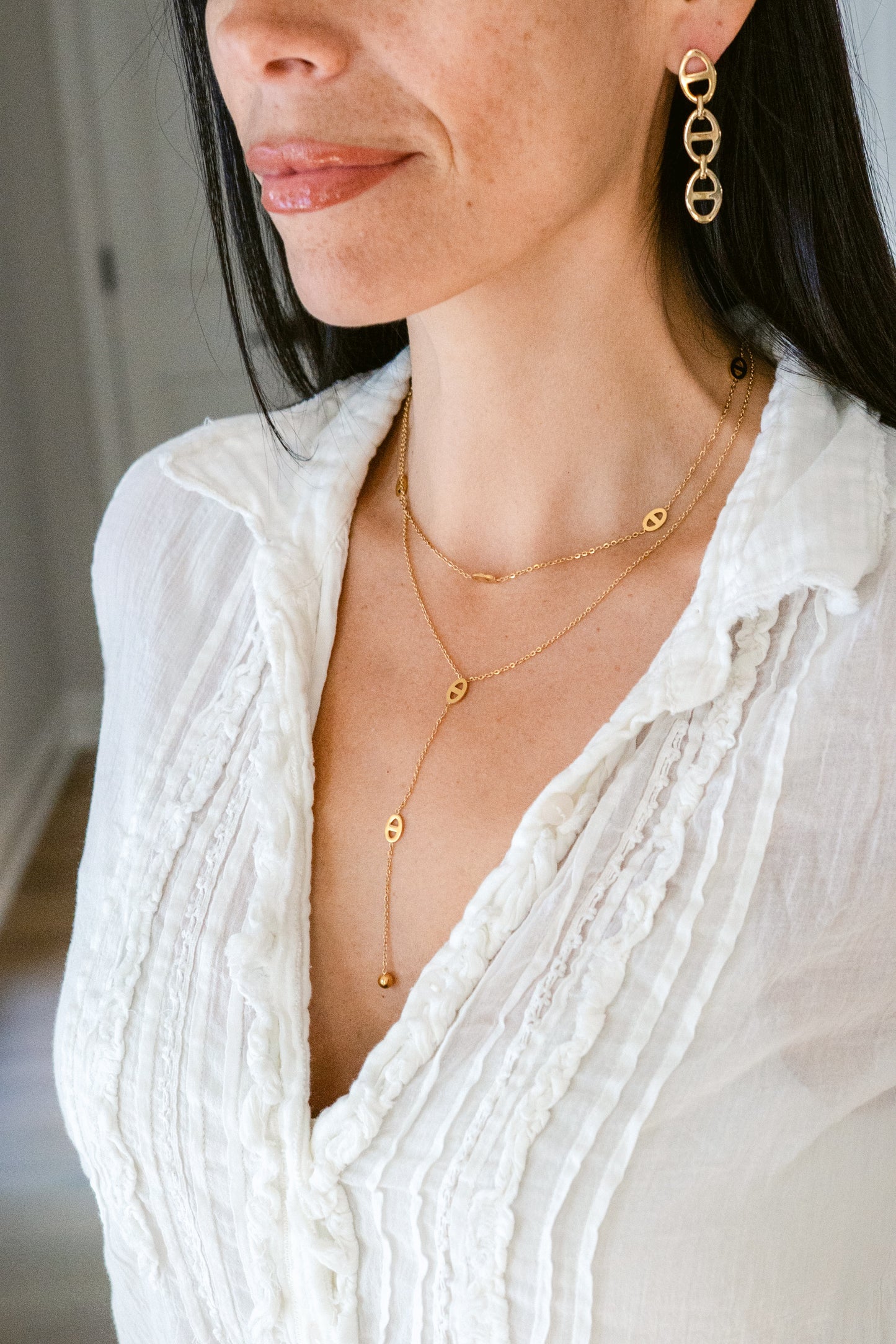 Regular price $28.80Refined dainty chain featuring distinctive mariner links in a mix of delicate and bold styles. Water-resistant and effortlessly chic, this necklace pairs timeless design with everyday durability.